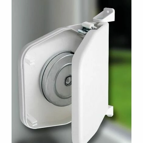 Cet enrouleur à visser robuste MINI de Schellenberg en couleur blanc est orientable sur 180 °. Il s’ouvre et permet ainsi un montage simple de la sangle. L’enrouleur à visser Schellenberg est monté sur le mur ou le cadre de la porte ou de la fenêtre. L’écart entre les trous de fixation est de 15,5 mm. Cet enrouleur à visser est montée sans sangle du volet roulant. Il convient pour les sangles de volet roulant avec une longueur maximale de 5 mètres et une largeur de sangle de 14 mm. Si une sangle existante de volet roulant est utilisé, aucune ouverture du caisson du volet roulant n’est nécessaire.