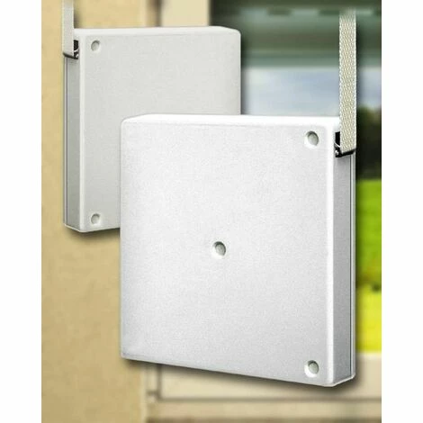 L’enrouleur de sangle de volet roulant blanc mesure 28 x 120 x 120 mm et convient pour les sangles de volet roulant d’une largeur de 14 mm. L’écartement des trous pour le montage de l’enrouleur de sangle est de 8,4 cm.