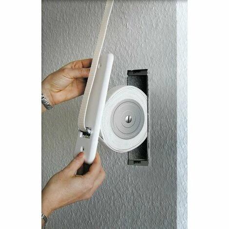 enrouleur d’entrée robuste et de haute qualité pour volets roulants sur fenêtres et portes pour courroies de volets roulants d’une largeur de 23 mm (système MAXI) et d’une longueur maximale de 5,0 m espacement des trous : 13,5 cm pour volets roulants d’une hauteur maximale de 2,3 m Dimensions (L x H x P) : 50 x 167 x 108 mm
