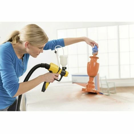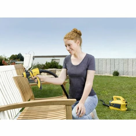 Accessoire de pulvérisation universel pour tous les matériaux à base d’eau, de solvant et de liquide, tels que Peintures, lasures, produits de protection du bois, apprêts et huiles Pour une application uniforme des couleurs sur les petits et moyens objets Le jet à triple réglage permet une adaptation parfaite à l’objet à peindre. Le positionnement supérieur du récipient permet un grand rayon de travail. Les coins et les bords peuvent être vaporisé facilement Adapté pour les systèmes de pulvérisation de peinture de la catégorie pulvérisateur universel, pulvérisateur mural et pulvérisateur Wood&Metal Ce texte a été traduit par une machine.
